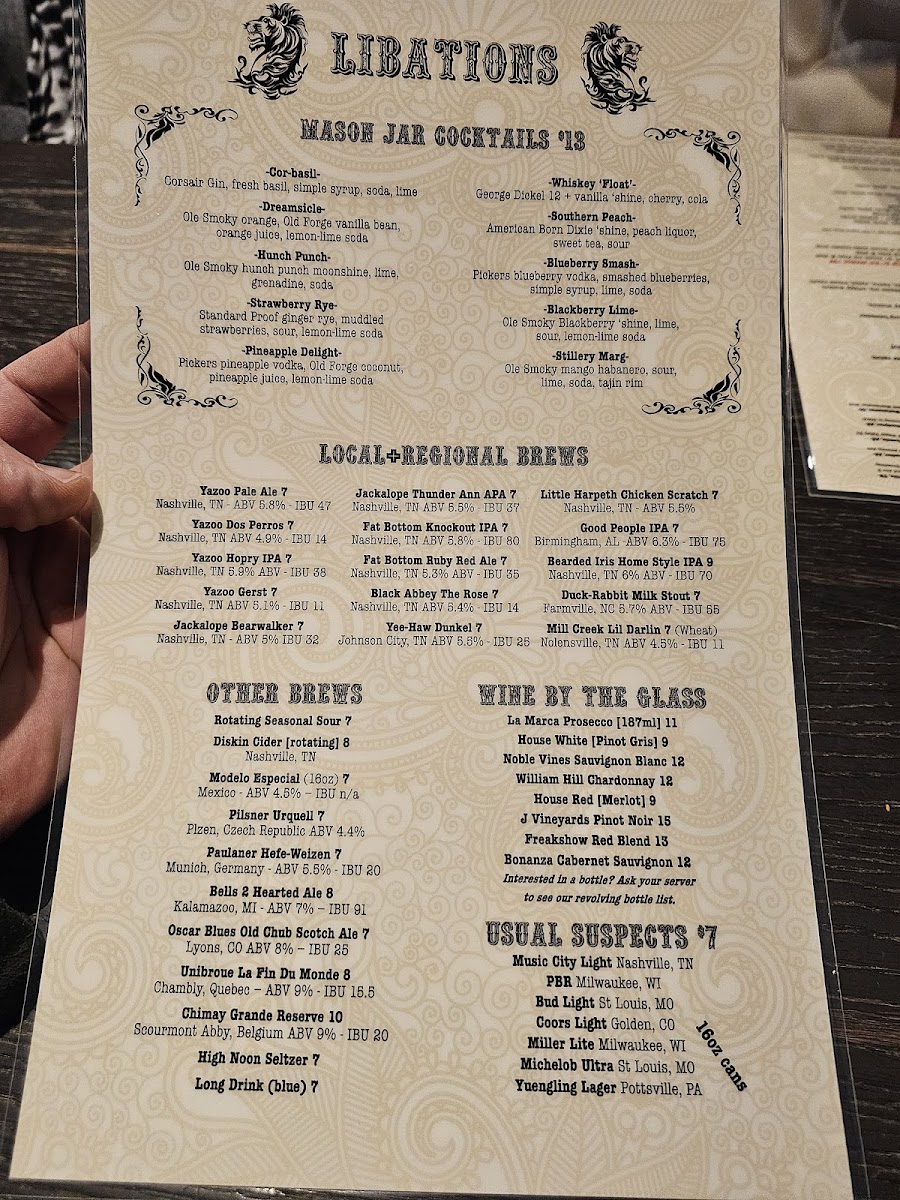 The Stillery creates an inviting atmosphere, enhanced by live music that complements the dining experience perfectly. With friendly service and a lively vibe, it's a perfect spot for casual gatherings or a lively night out in Nashville.